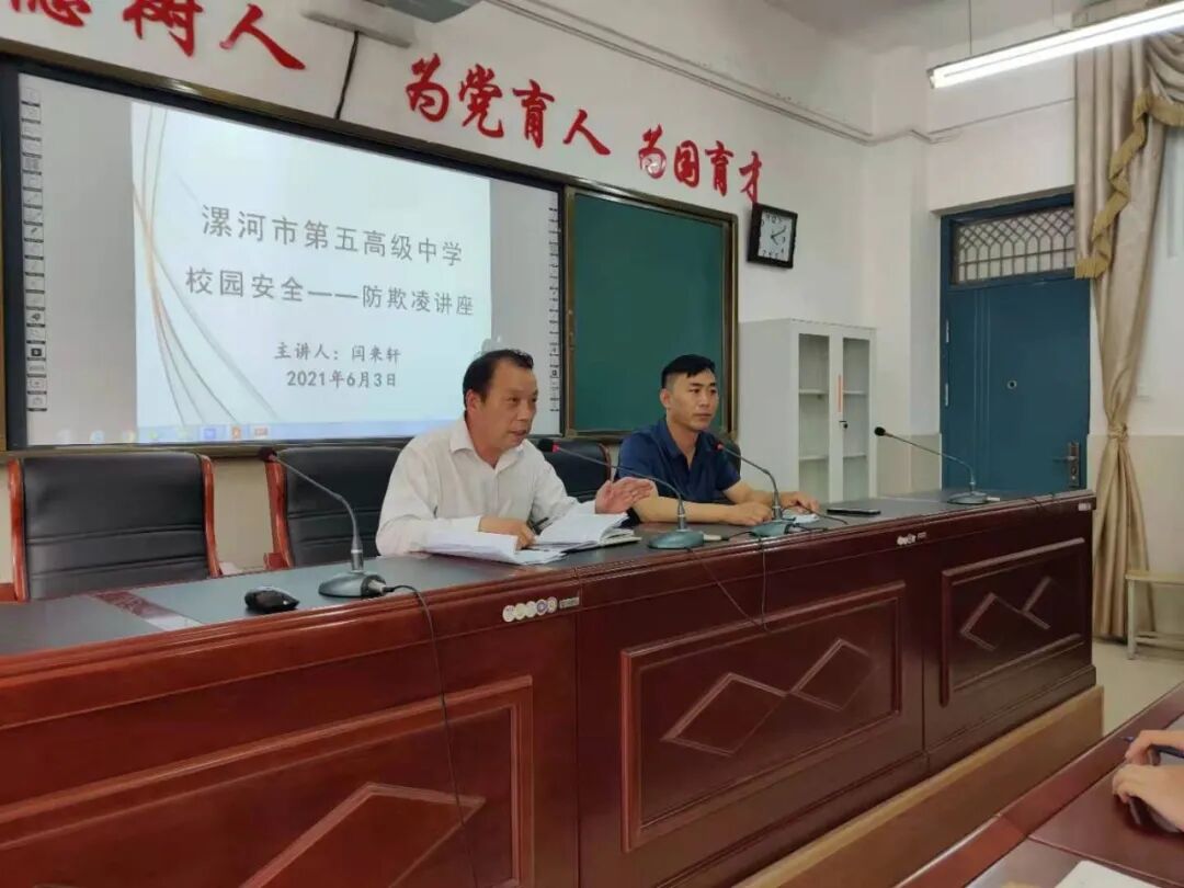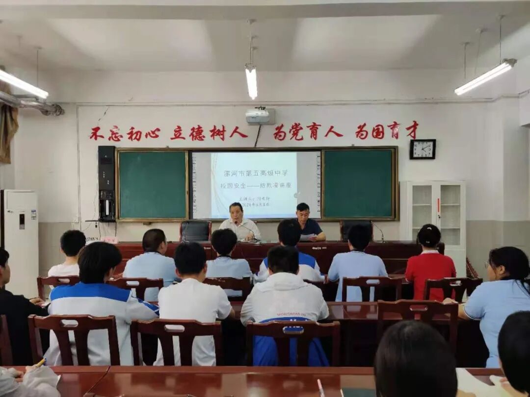 为进一步加强校园安全管理工作,切实维护学校安全稳定,确保广大师生生命和财产安全,6月3日下午,漯河五高在综合楼103室召开校园安全工作班长专题会。会议由漯河五高副校长闫来轩主持,政教处主任杜松山、团委书记张琦和各班班长参加。 会上,闫来轩根据上级要求,结合我校实际情况,强调要牢固树立“珍爱生命,安全第一”的意识,严格落实安全管理制度,坚持以人为本,把安全摆在首要的位置。随后,会议围绕“校园防欺凌”“防溺水”“交通安全”三个方面具体展开。 首先,闫来轩作为主讲人,进行“校园安全——防欺凌讲座”,明确了校园欺凌的定义。通过分享真实案例,告诉同学们遇到校园欺凌时的正确处理方法:即沉着、理智的分析并解决问题,必要时及时向老师和家长说明情况,请求家长和老师协助处理。尤其注意不能以暴制暴,否则,就会触犯法律,将会受到制裁。闫来轩教育同学们要团结友爱,珍惜同学情,从自我做起,不恃强凌弱、不以大欺小、不聚众斗殴,树立良好的社会主义道德观,为身边人传递正能量,预防校园欺凌事件的发生,学会有效的保护自己。 随后,杜松山进行“交通安全、防溺水”讲座。 杜松山指出,加强校园周边交通安全管理、确保广大师生安全、维护良好的教学和生活秩序是政教处的重要职责。针对学生特点,以及上学、放学路上可能遇到的实际情况,杜松山通过通报个别交通违法案例,劝导同学们认真遵守交通规则,杜绝闯红灯、逆行、不走斑马线等不文明交通行为。希望同学们积极做文明的交通参与者,共同维护安全、有序、文明的校园周边交通环境,确保师生出行安全。 最后,杜松山强调防溺水教育将常态化进行,并分享了防溺水“六不”:不私自下水游泳;不擅自与他人结伴游泳;不在无家长或教师带领的情况下游泳;不到无安全设施、无救援人员的水域游泳;不到不熟悉的水域游泳;不熟悉水性的学生不擅自下水施救。 漯河五高历来高度重视校园安全工作,严格执行教育部门关于安全工作的各项要求并坚决贯彻落实到位。通过形式多样的安全教育活动,帮助学生掌握知险避险技能,增强安全意识,从而筑牢校园安全防线,为建设平安校园、和谐校园打下了坚实的基础。 |