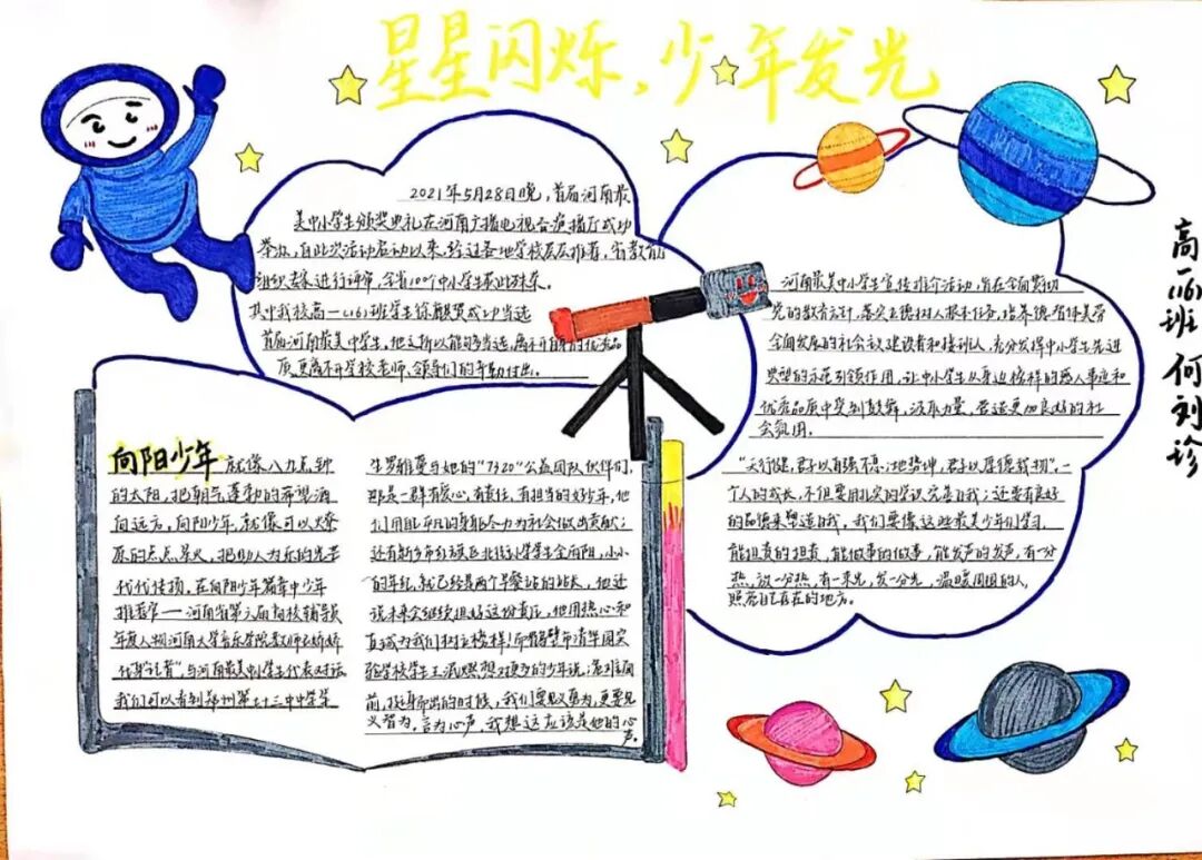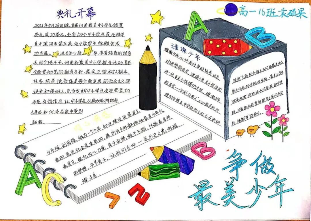最是五高用心处,一腔热血育新人。为充分发挥2021 河南最美中小学生的示范带动作用,引导家长、学校、社会树立正确的教育观、成才观,促进学生全面发展和健康成长,漯河市第五高级中学校长郭爱红亲自部属,学校党办、德育处、团委积极组织,利用晨会、班会、手抄报和班级宣传栏等多种形式进行广泛宣传与学习,安排学生代表徐麒贺在升旗仪式上讲述最美少年的故事,组织学生集体收看最美少年颁奖典礼现场直播,让同学们汲取榜样力量,争做最美少年。春催桃李遍天下,院内桃李皆俊秀。2021年6月1日晚,当首届河南最美中小学生颁奖典礼现场的大屏幕上出现漯河市第五高级中学徐麒贺这两行字迹时,现场收看直播的五高学子们立即沸腾了。徐麒贺,漯河市第五高级中学高一(16)班的学生。2020年10月2日晚,对面小区一楼的院子里着起大火,他临危不惧,首先拿起灭火器冲到着火点进行灭火,并指挥围观区民正确使用灭火器合力灭火,最终在消防员赶到前完全扑灭火势,避免了人员伤亡和财产损失。他也因此被评为2021首届河南最美中学生。教诲路漫长,榜样是力量。同学们从颁奖典礼上的向光少年、璀璨少年、逆光少年、热血少年身上汲取了力量,纷纷表示要用扎实的学识完善自我,用良好的品德塑造自我,端正态度,不骄不躁,自尊自爱、自立自强,争做“文明大气,自立乐学,向上生长”的新时代少年。 一点一滴传承美德良言,一撇一捺支撑至善人间。徐麒贺同学能获此项殊荣,除自身立德向上、勤学向善外,更得益于漯河五高“健全人格、止于至善”的育人理念。学校把立德树人贯穿于教育教学的全过程、全环节,德育工作从师生之间、师师之间、生生之间的心灵沟通开始,使诸方面教育相互渗透、协调发展,促进学生的全面进步和健康成长。通过本次活动,我校师生的精神面貌焕然一新。在全面创文、创优的大形势下,全体师生将努力营造“人人代表五高形象,人人关注五高声誉”的良好氛围,把德育工作形成长效机制,培养出更多像徐麒贺一样的美少年。 |
