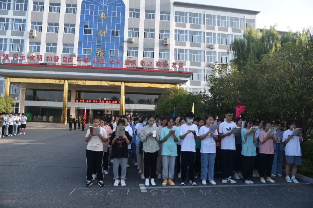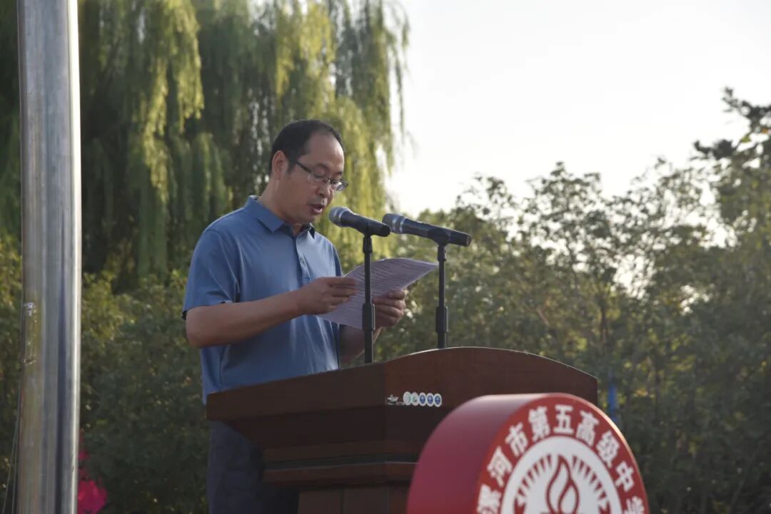 9月13日,漯河市第五高级中学举行庄重、严肃的升国旗仪式。学校党委成员、全体教职工和高一年级学生参加。