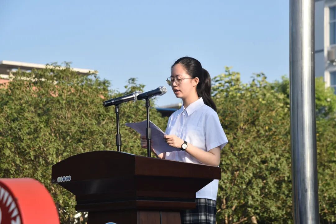然后,高一学生代表黄珂欣进行了《五高----我们准备好了》主题演讲。作为高一年级新生,我们走进新的学校,步入新的起点,怀着新的希望,踏上新的征程。经过短短几天的高中学习生活,明白前路必将充满希望,我们将以不懈的努力和必胜的信念去迎接高中阶段的挑战。