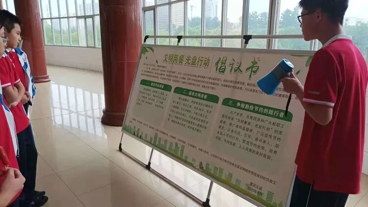我校始终奉行“厉行节约、制止浪费”, 推动光盘行动常态化。采取多种措施制止餐饮浪费行为,比如推出大小份饭,在餐厅的显眼处张贴宣传标语等,引导学生爱惜粮食、节约资源,珍惜劳动成果。