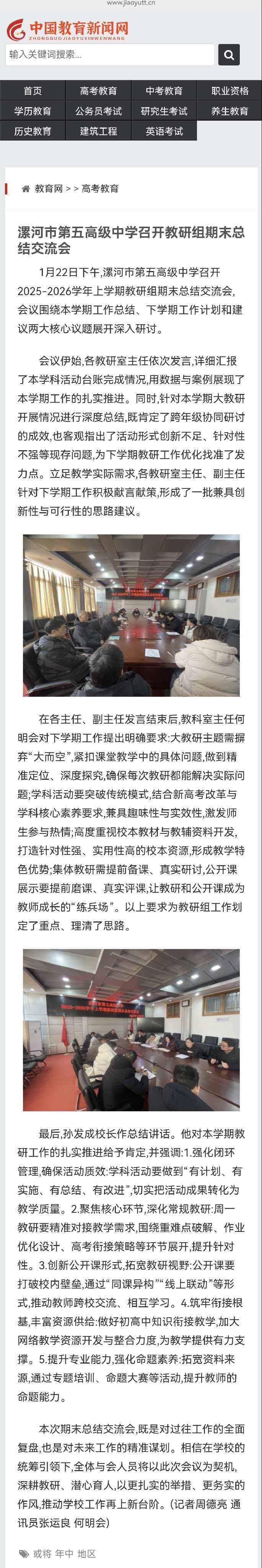 转载《中国新闻教育网》:漯河五高召开教研组期末总结交流会